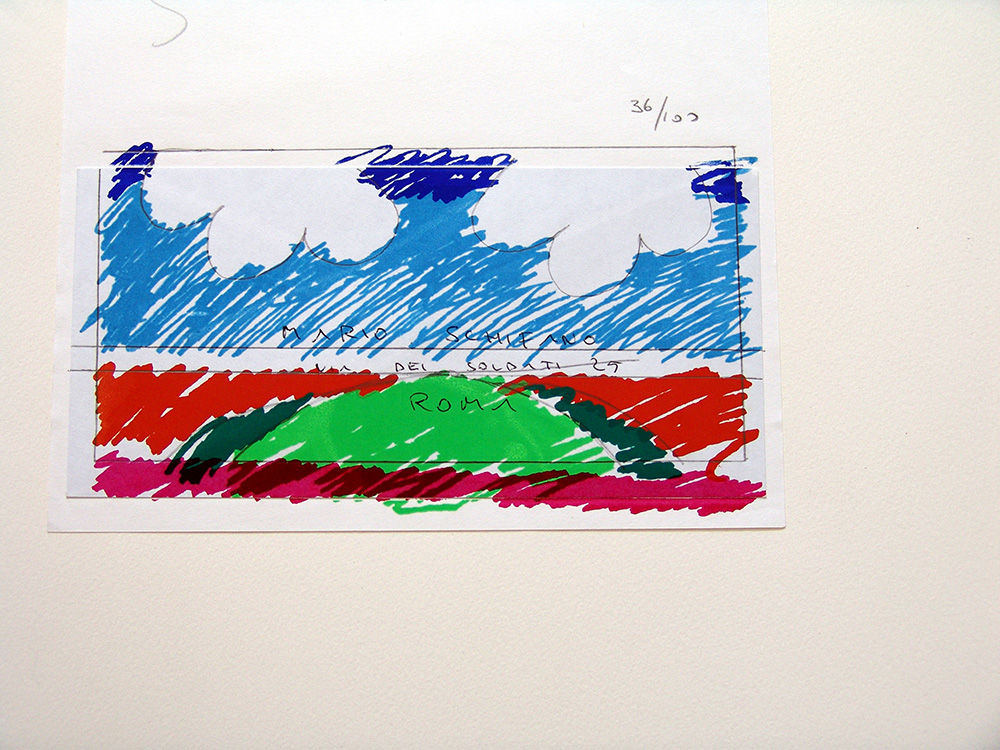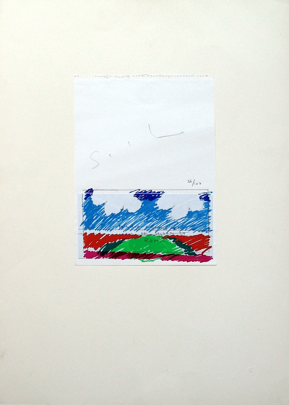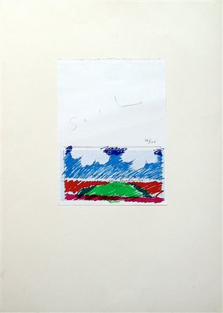 Mario Schifano 1934, Homs (Libia) - 1998, Roma (Rm) - [Italia] Paesaggio litografia 70x50 cm es. 36/100; firma dell'artista in alto e timbro "Il labirinto" di Roma in basso a destra certificato di autenticità Picenum