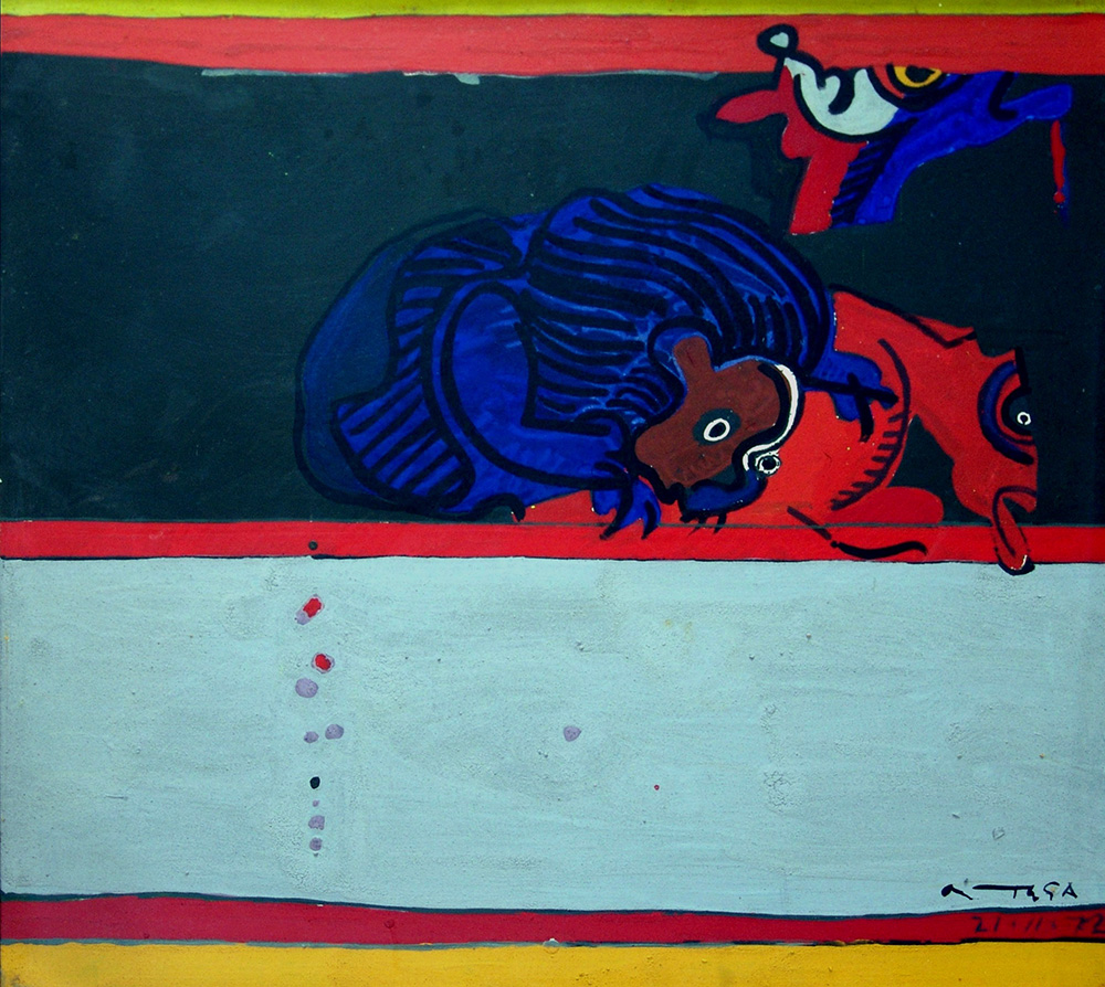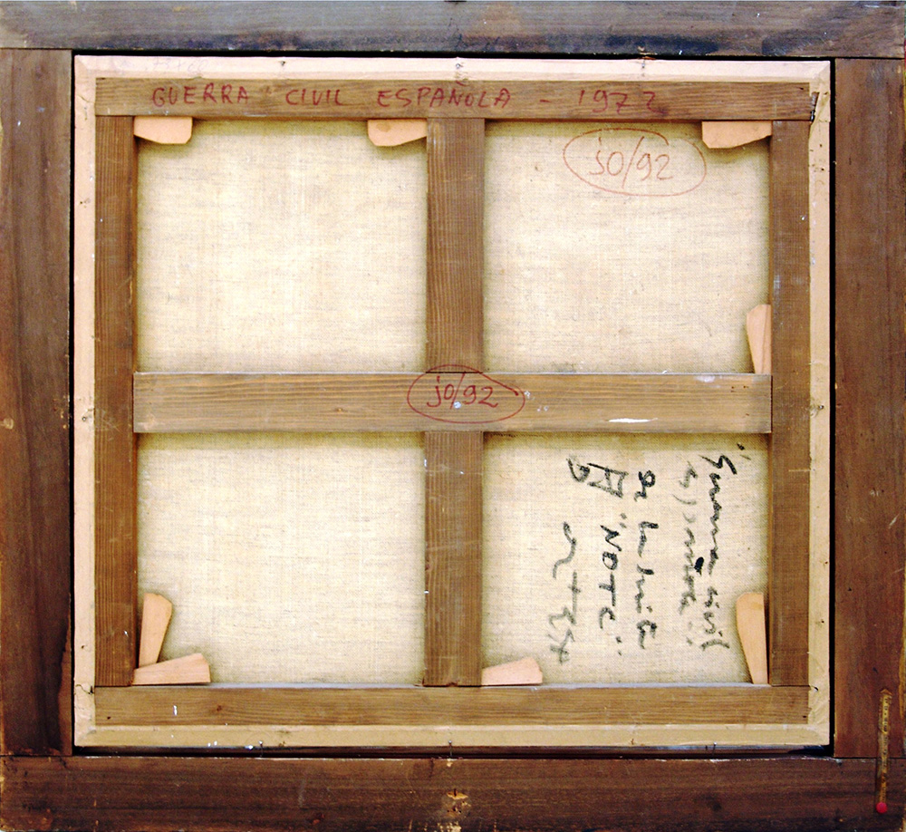José Ortega 1921, Arroba de los Montes (Spagna) - 1990, Parigi (Francia) - [Spagna] Guerra civil espanola olio su tela 65x70 cm 1972 firma dell’artista in basso a destra e sul retro; opera con cornice certificato di autenticità Picenum