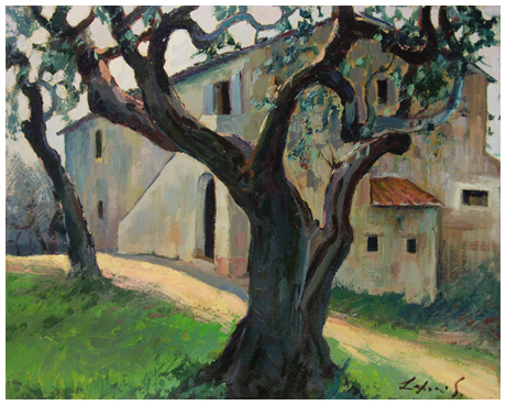 GIO BATTA LEPORI Livorno 1911 – Livorno 2002 Senza titolo Olio su faesite 35 x 44,5. Firma in b. a d.; sul verso etichetta dell’artista con dedica e firma + timbro di una collezione livornese + data 16-06-960. B.A.: 100