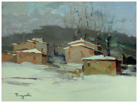 DINO PELAGATTI Livorno 1932 – Livorno 2016 Nevicata Olio su tavola 30 x 40....