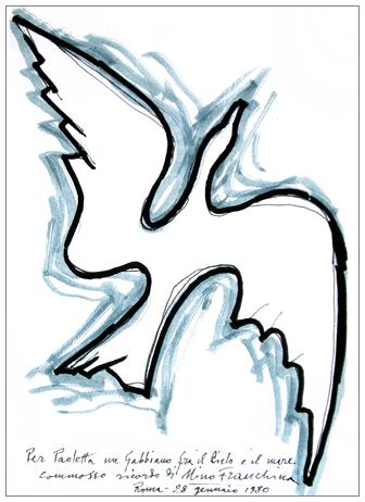 NINO FRANCHINA Palmanova 1912 – Roma 1987 Senza titolo 1980 Tec. mista su carta 22 x 16. Dedica, firma, località e data in b. al c. Pubbl.: “Omaggio a Paoletta” catalogo mostra a cura di Giovanni Colizza e Stefania Severi, Circolo Zaccaria Negroni, Marino, 26 novembre – 6 dicembre 1987, p.74. B.A.: 80