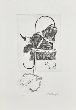Trubbiani Valeriano 5 Fasi per la Tecnica del Supplizio incisione su carta, cm 50x35 (lastra cm 34,5x20) esemplare 84 su 100 sul fronte: firma e data eseguita nel 1976