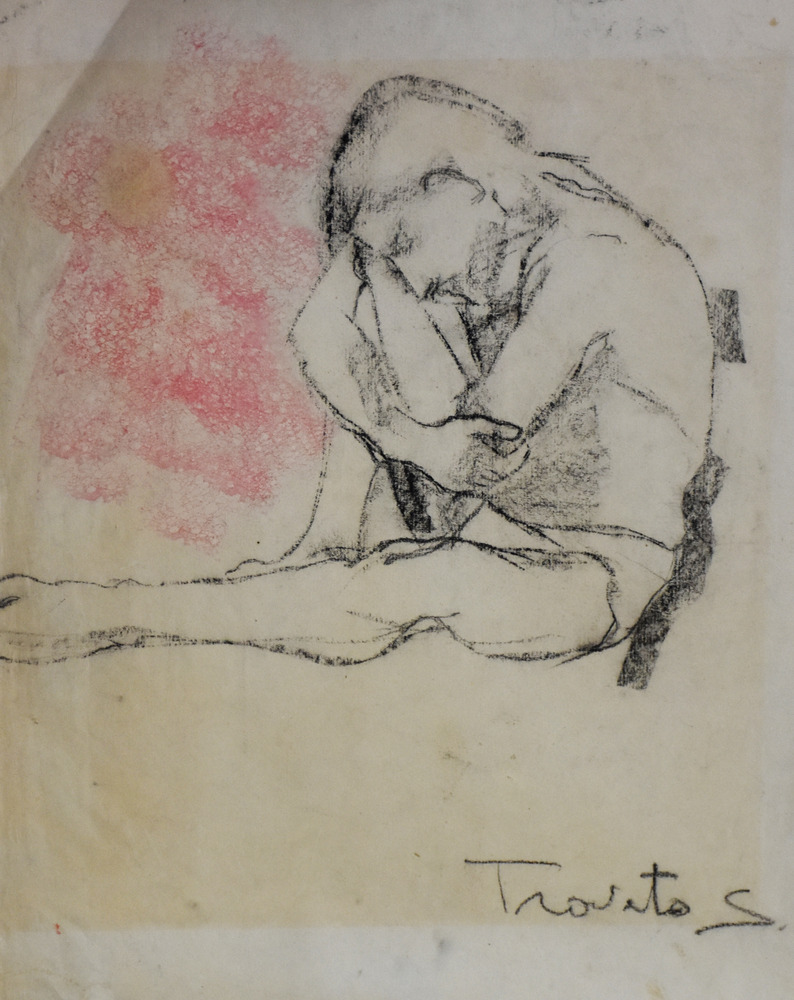 Trovato Sebastiano Figura carboncino su carta, cm 49,5x37 sul fronte: firma
