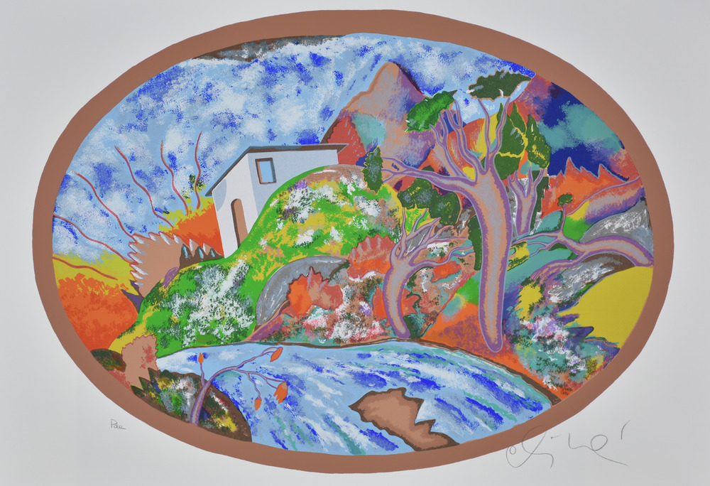 Alinari Luca Paesaggio Ovale serigrafia su carta Fabriano, cm 50x70 esemplare prova d'autore sul fronte: firma