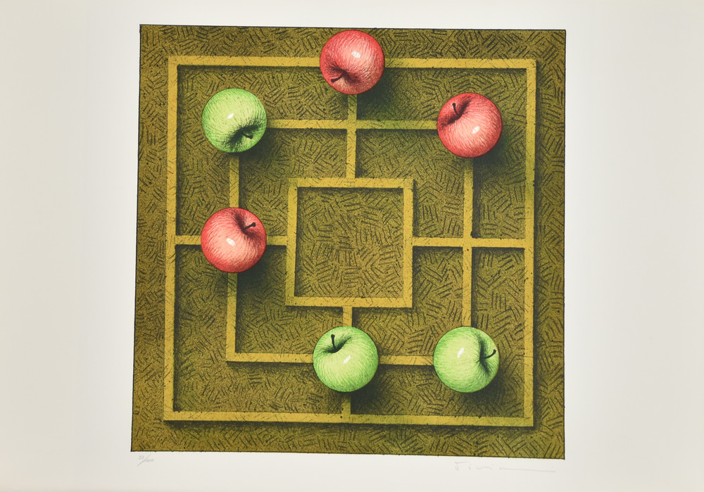 Viviani Vanni Labirinto con Mele litografia su carta, cm 50x70 esemplare 38 su 100 sul fronte: firma