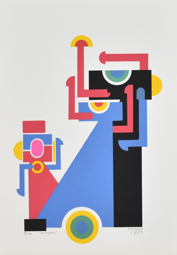 Molinari Mario Saliscendi litografia su carta, cm 50x35 esemplare 91 su 100 sul fronte: firma e data eseguita nel 1983