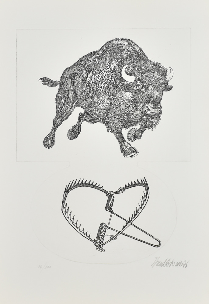 Trubbiani Valeriano 5 Fasi per la Tecnica del Supplizio incisione su carta, cm 50x35 (lastra cm 37,5x28) esemplare 84 su 100 sul fronte: firma e data eseguita nel 1976