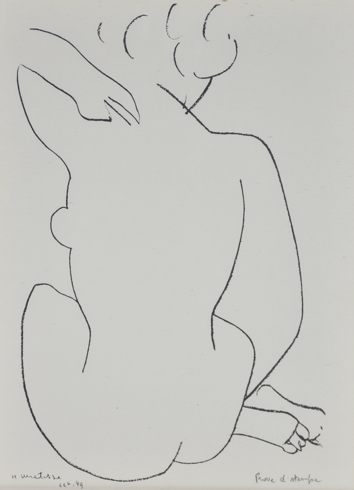Matisse Henri Nudo di Donna litografia su carta, cm 42x32 esemplare a di stampa sul fronte: firmata in lastra sul retro: etichetta con timbro dello Studio d'Arte Perna di Milano
