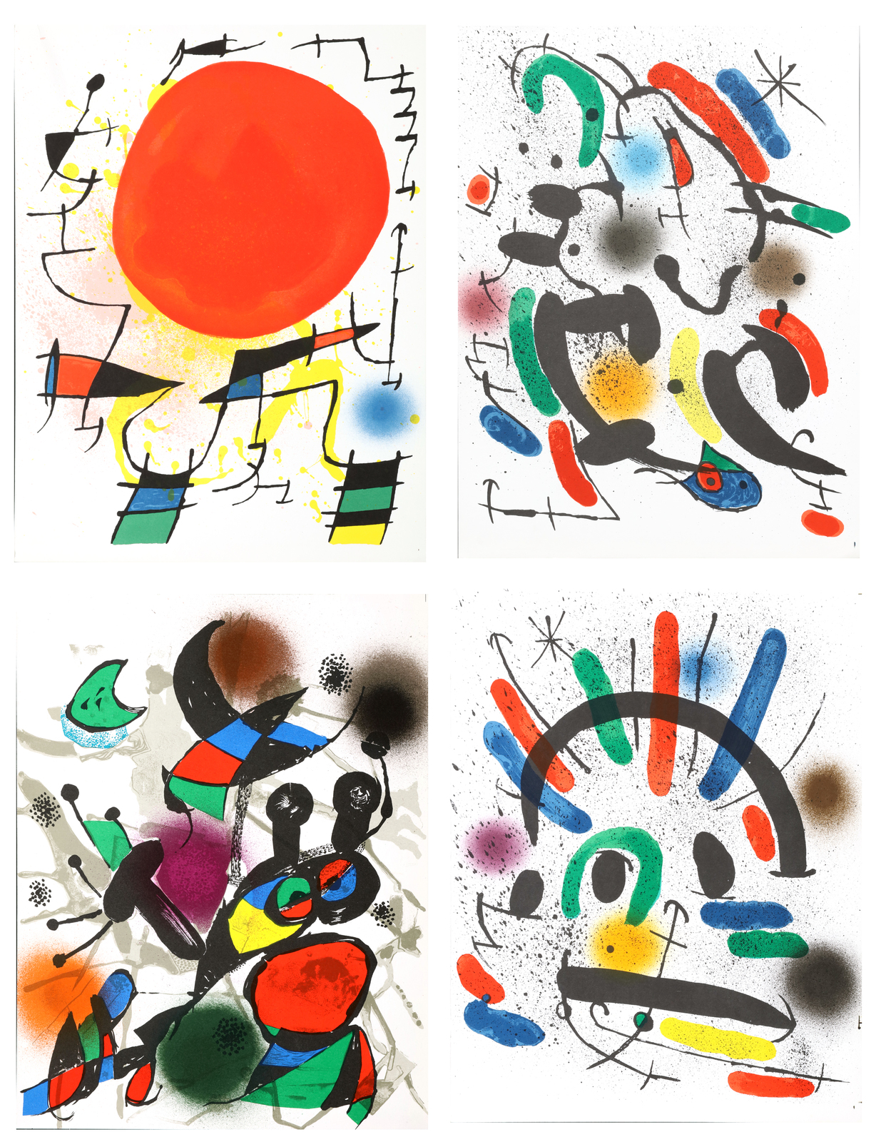 MIRO' JOAN (1893 - 1983) Lot composed of 4 sheets, Lithography II, II, III, VI. Lithograph. Cm 25,00 x 34,00.