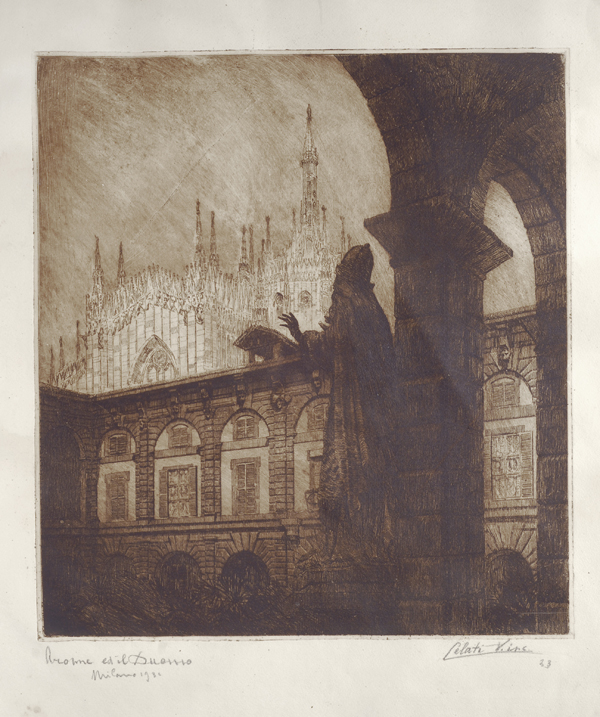 Vitali Aronne ed il Duomo, 1930 Acquaforte, mm. 595x500 (fogli); mm. 470x425...