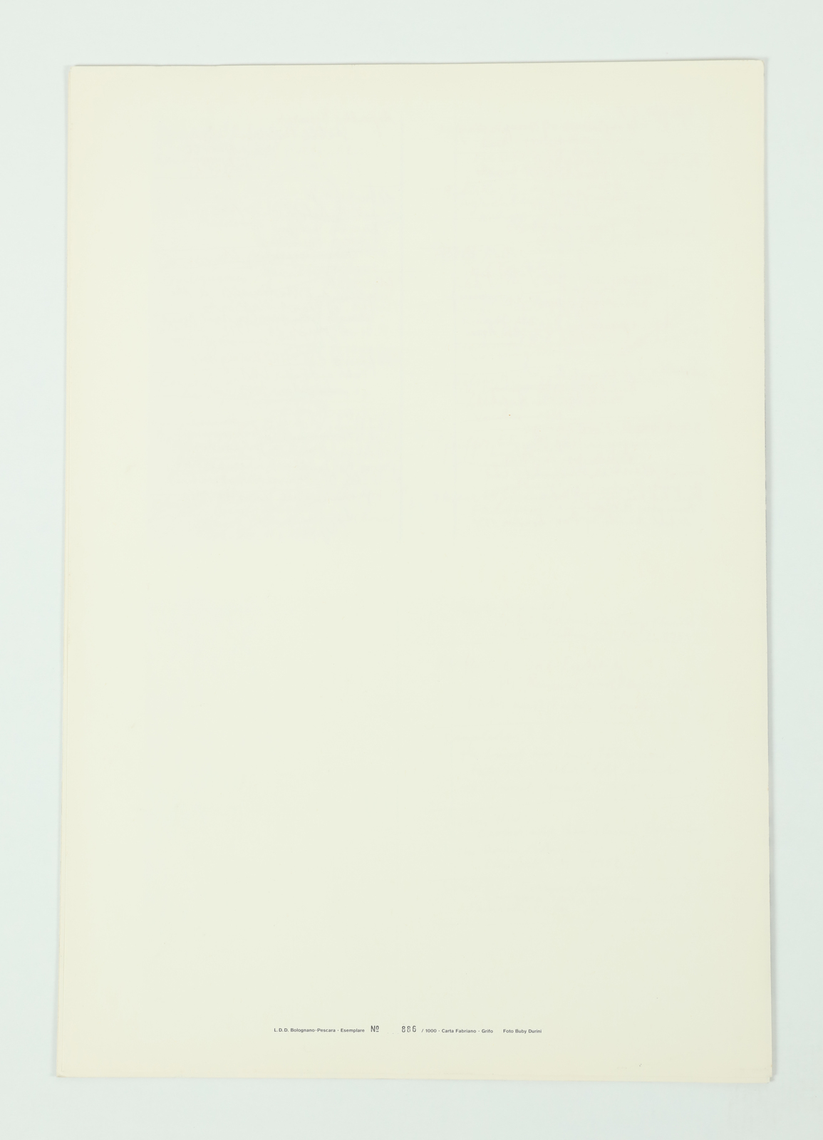 BEUYS JOSEPH (1921 - 1986) Dossier composed of 8 sheets. Print. Cm 34,50 x 50,00. 886/1000. Edition at the back. The dossider include: artist's photo, Buby Durini's photo, reproduction of written with artist's signature, poster GRASSELLO Ca (OH)+H2O DIFESA DELLA NATURA and a differente texts on the defense of the nature.