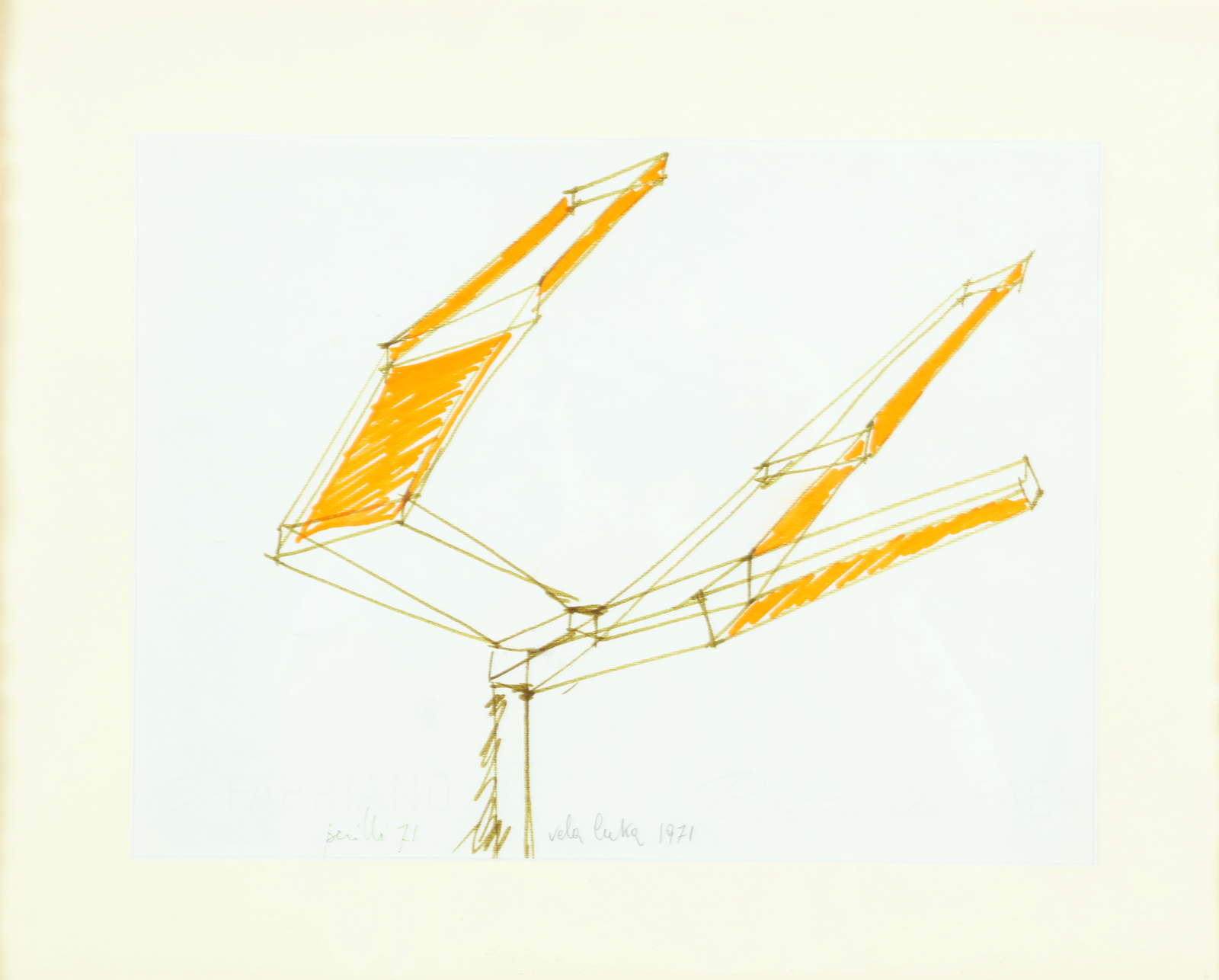 PERILLI ACHILLE (n. 1927) Vela luka. 1971. Tecnica mista su carta. Cm 30,00 x 23,00. Titolo, firma e anno in basso a destra. Autentica dell'artista su fotografia. Cornice presente