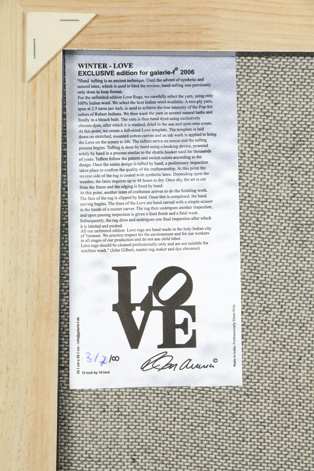 INDIANA ROBERT (n. 1928) Winter -LOVE. Carpet. Cm 39,00 x 39,00. N.317. At the back Galerie - F label with edition and signature in print. Exlusive edition for Galerie - F, Kranenburg, 2006. . Cornice presente