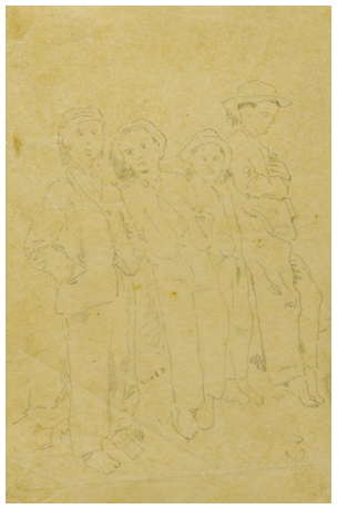 TELEMACO SIGNORINI Firenze 1835 – Firenze 1901 Contadini 1872 ca. Matita su carta velina 12,8 x 8,2. Firma in b. a d. Pubbl.: “Mostra di disegni di Telemaco Signorini” catalogo a cura di Palma Bucarelli, Galleria Nazionale d’Arte Moderna, Roma 1969, p.31, n.155. (allegate copie di pubblicazione) “Asta 15-II” catalogo Casa d’Aste Gonnelli, Firenze, sabato 17 maggio 2014 lotto 773. B.A.: 220
