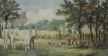 Renato Zini (Firenze, 1890 - 1969) Figure in campagna Olio su tavola, cm....