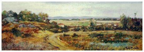 RENZO CASALI Livorno 1897 – Livorno 1977 Senza titolo 1956 Olio su tavola 18 x 53,2. Firma in b. a d.; sul verso firma, località e data + timbro, data e firma galleria Saletta Carmine, Livorno + timbro Galleria Labronica, Grosseto. B.A.: 90