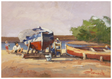 VILLY CLEMENTE Livorno 1923 – Livorno 1999 Miramare Moletto 1975 Olio su faesite 35 x 49,5. Firma in b. a d.; sul verso firma, titolo e data. B.A.: 70