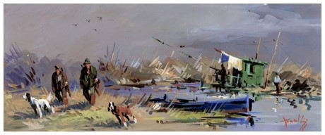 MARIO ROMBOLINI Livorno 1935 – Livorno 2014 Caccia in padule Olio su masonite...