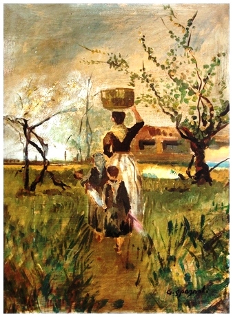 GINO SPAGNOLI Senza titolo Olio su faesite 50 x 35. Firma in b. a d. B.A.: 50