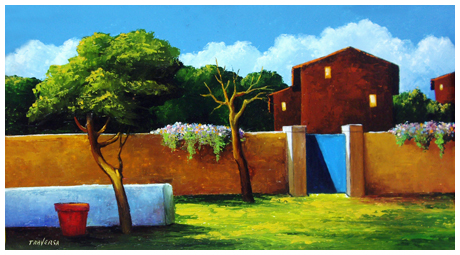 TOMMASO TRAVERSA Vittoria 1940 Il cancello blu, San Rossore 1965 Olio su...