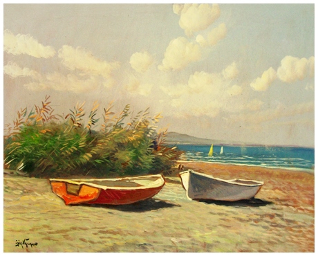 GIACOMO VACCARO Sassetta 1935 Senza titolo Olio su masonite 40 x 50. Firma in b. a d. B.A.: 50