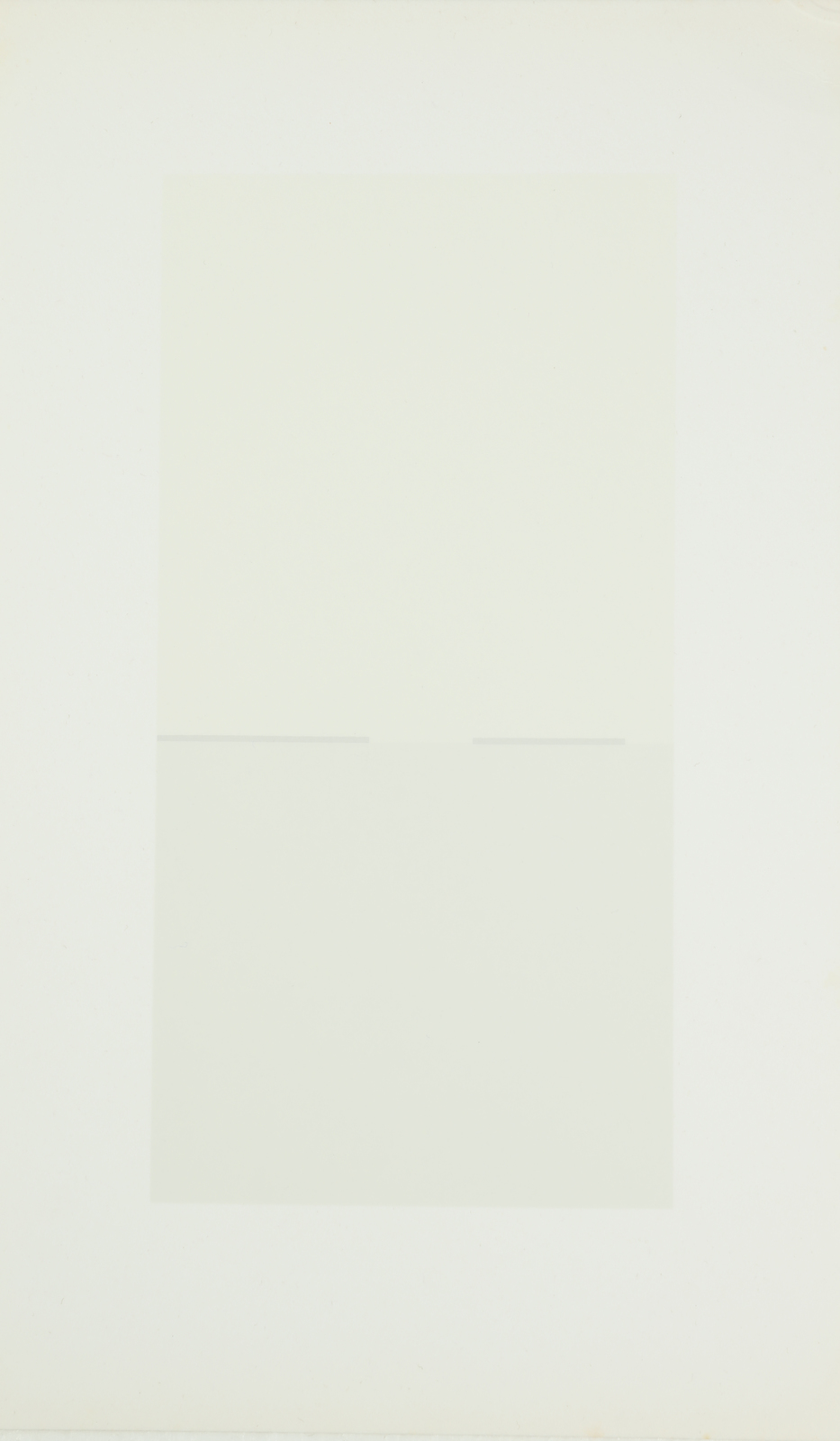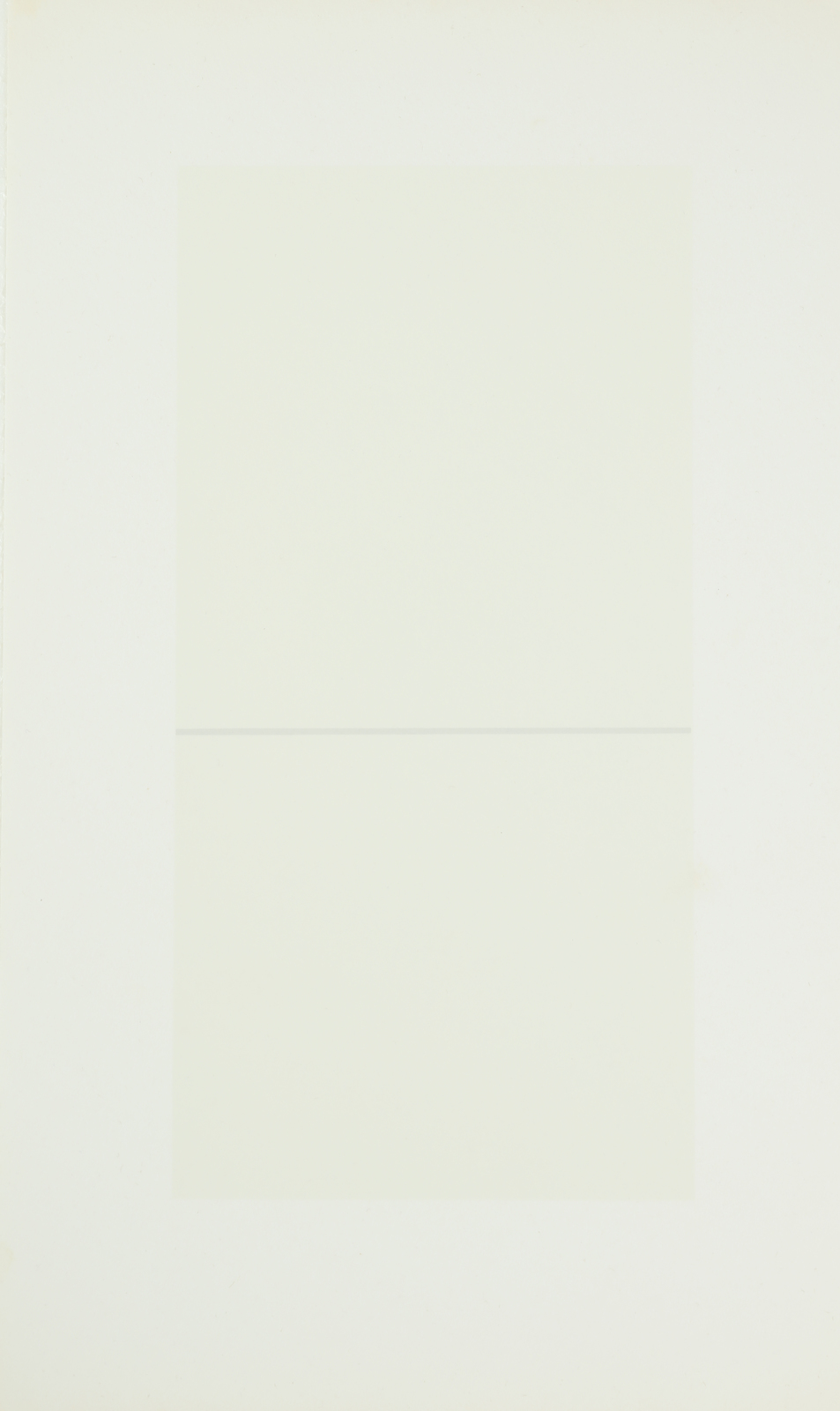 CALDERARA ANTONIO (1903 - 1978) E. Un testo e 16 serigrafie di Antonio Calderara. 1974. Silkscreen (complete folder). Cm 22,50 x 37,50. P.a. Original box. Muggio: Samuele Villa tipography, 1973. 16 original serigraphic plates signed dated and numbered in pencil by the author at the back. Original cream portfolio within cream box. Foxing. Black and white copy destined and daedicated to the editor (Christmas 1974 for Willy Zuco), missing the introductory text and image.