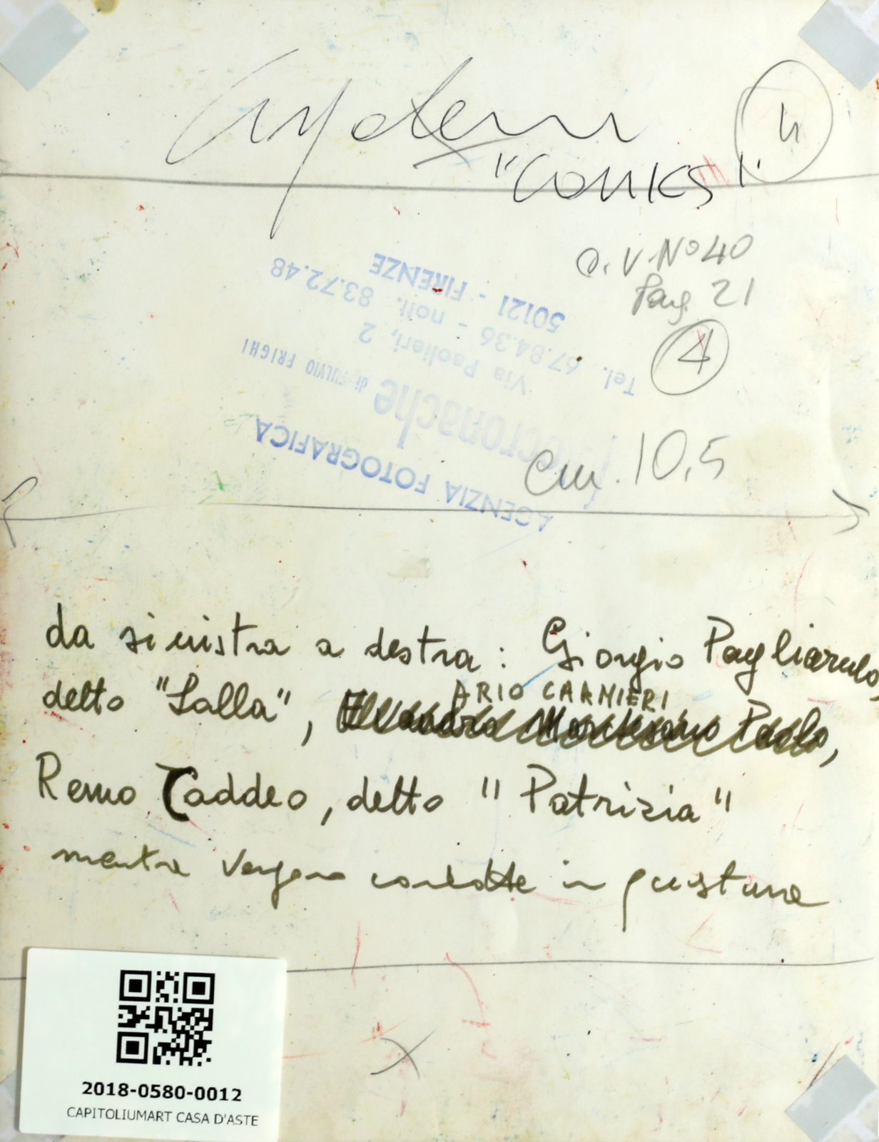 CINGOLANI MARCO (n. 1961) Comics. Tecnica mista su fotografia. Cm 18,00 x 24,00. Al retro titolo, firma e credito. Autentica dell'artista su fotografia. Cornice presente