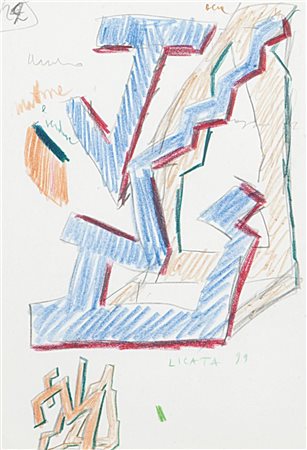 LICATA RICCARDO Torino 1929 "Iolao" 1998 22x15 pastelli su carta Opera...
