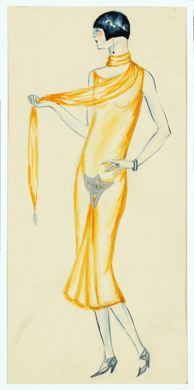 BURGNER DODO DORTE CLARA (1907 - 1998) Woman with yellow dress. Mixed media on paper. Cm 16,00 x 34,00.