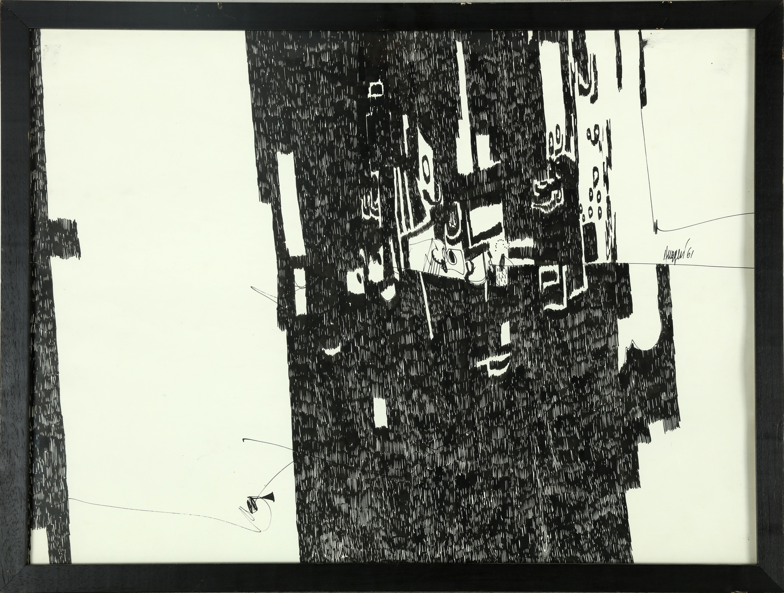 RUGGERI PIERO (1930 - 2009) Senza titolo. 1961. Tecnica mista su carta. Cm 64,00 x 48,00. Firma e anno in alto a destra. Cornice presente