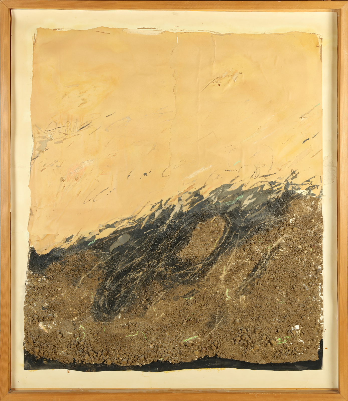 SARTELLI GERMANO (n. 1925) Senza titolo. Tecnica mista e collage su carta. Cm 100,00 x 120,00. Firma in alto a sinistra. Cornice presente