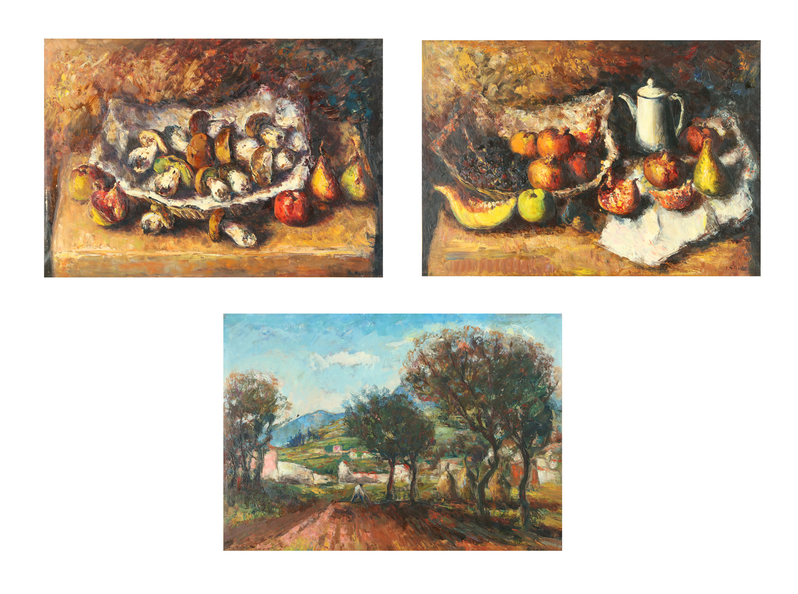ALBERTI ALDO (n. 1912) Lot composed of 3 artworks. Oil on canvas . Cm 70,00 x 50,00. All artworks have signature lower right. Cornice presente