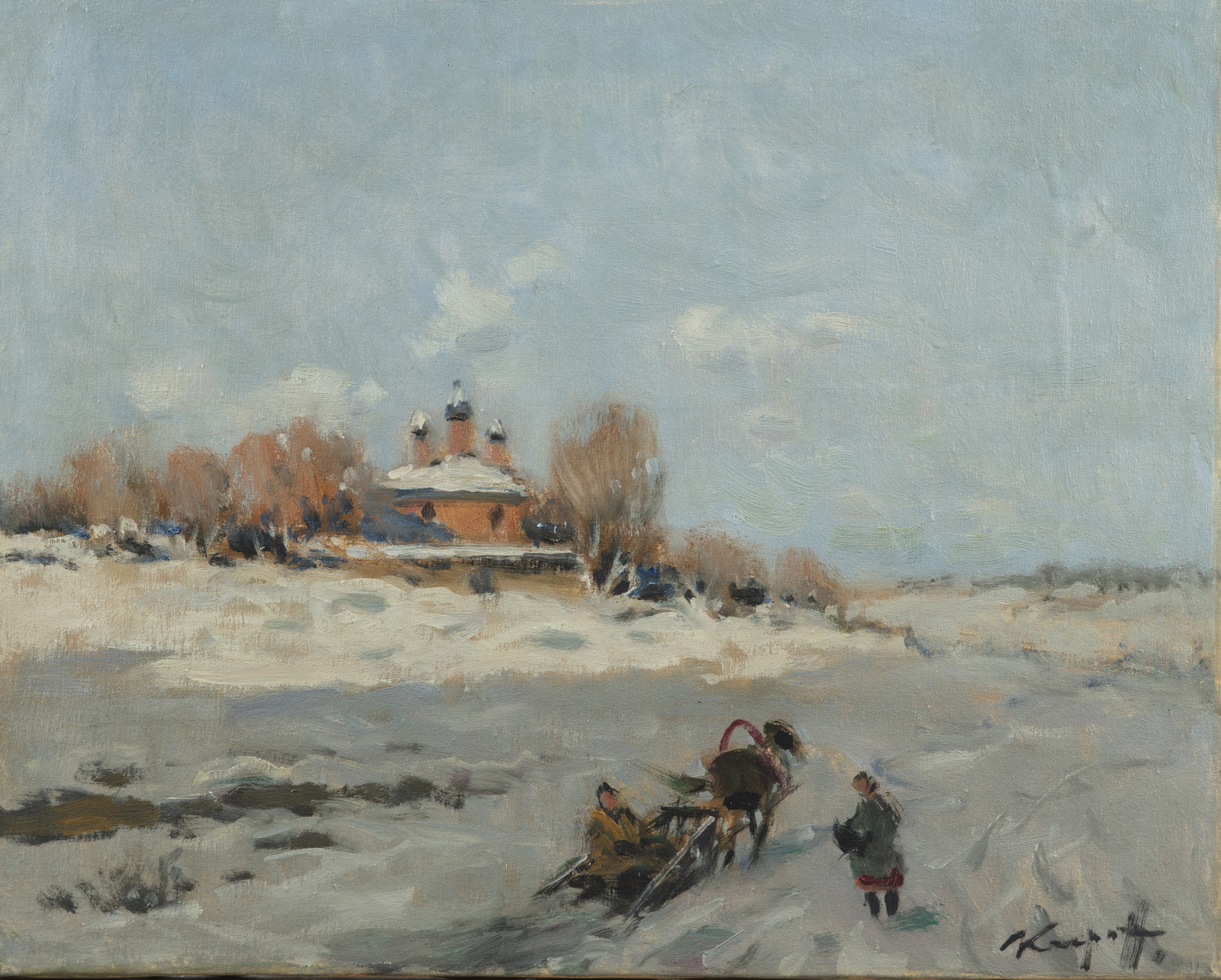 KARPOFF IVAN (1898 - 1970) Paesaggio invernale. Olio su tela . Cm 51,00 x...