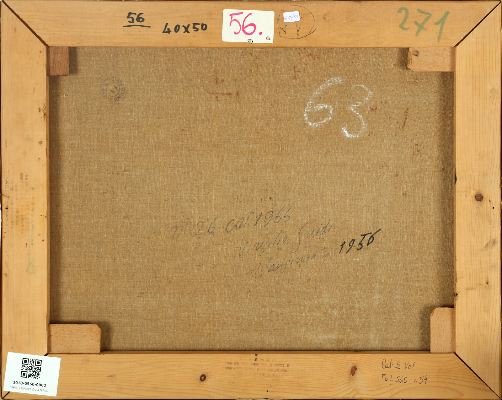 GUIDI VIRGILIO (1891 - 1994) L'angoscia. 1956. Olio su tela . Cm 50,00 x 40,00. Al retro titolo, firma e anno. Pubblicazione: Catalogo ragionato Virgilio Guidi, Vol. II, Electa Editore, Milano 1998, pag. 560, tav. 59.