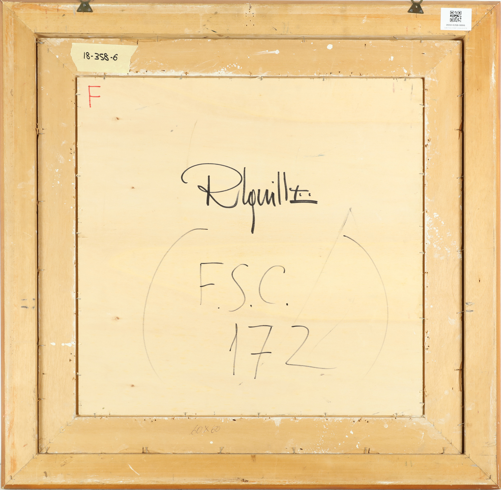 SQUILLANTINI REMO (1920 - 1996) In the square. 1990. Oil on board. Cm 60,00 x 60,00. Signature lower right and at the back. Remo Squillantini archive's authenticity certificate on photo.