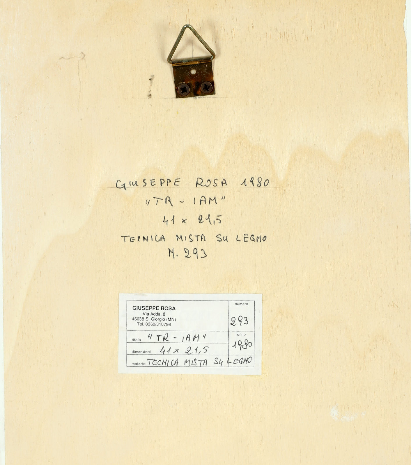 ROSA GIUSEPPE (n. 1948) TR-IAM. 1980. Tecnica mista su legno. Cm 21,50 x 41,00. Al retro titolo, firma, anno e cartiglio descrittivo dell'artista.