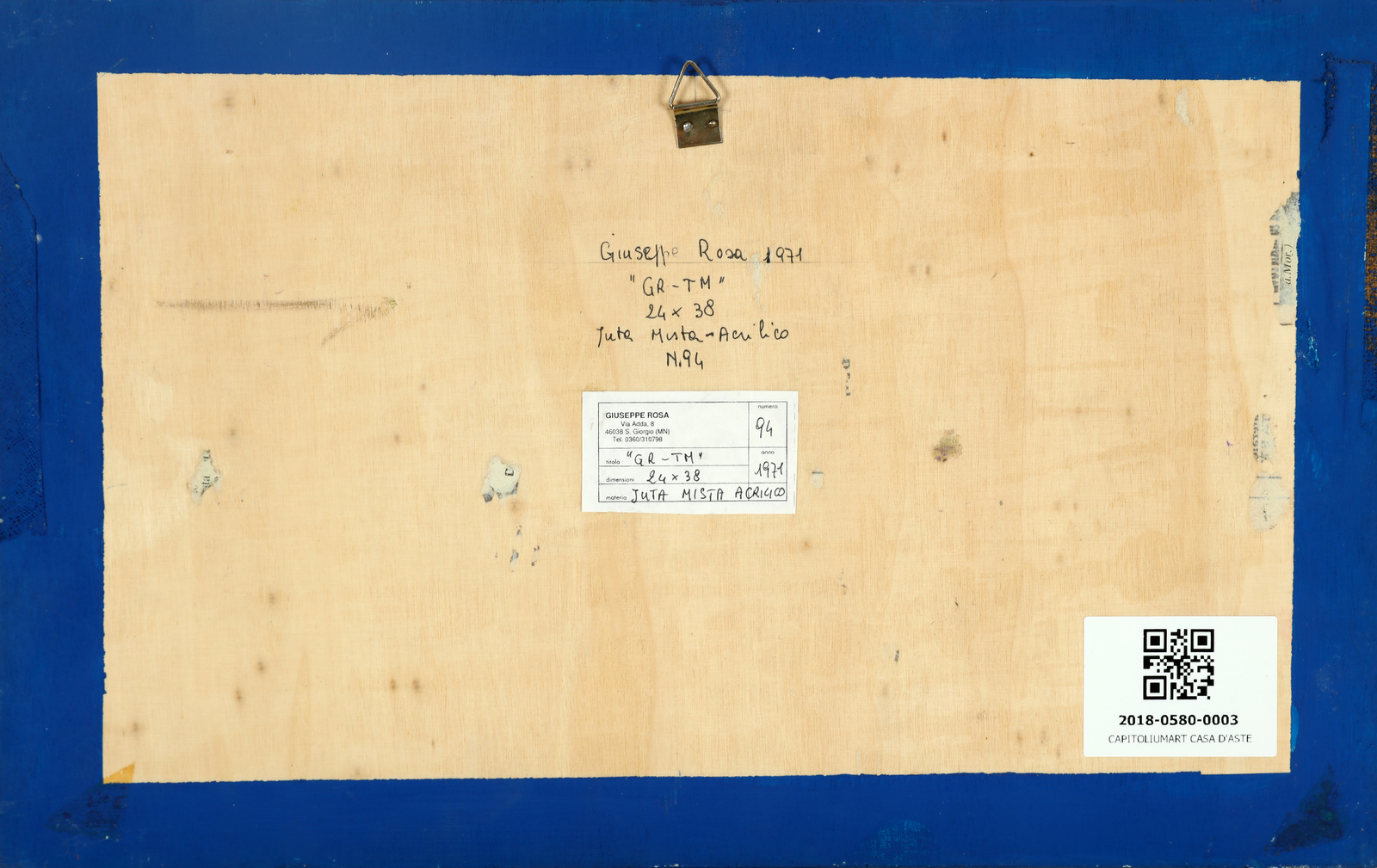 ROSA GIUSEPPE (n. 1948) GR-TM. 1971. Mixed media on wood. Cm 38,00 x 24,00. At the back title, signature, year and artist's label.