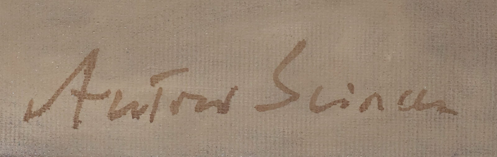 SCIACCA ANTONIO (n. 1957) Stella marina e vetro. Olio su tela . Cm 70,00 x 90,00. Firma in basso a destra. Al retro firma. Autentica dell'artista su fotografia.