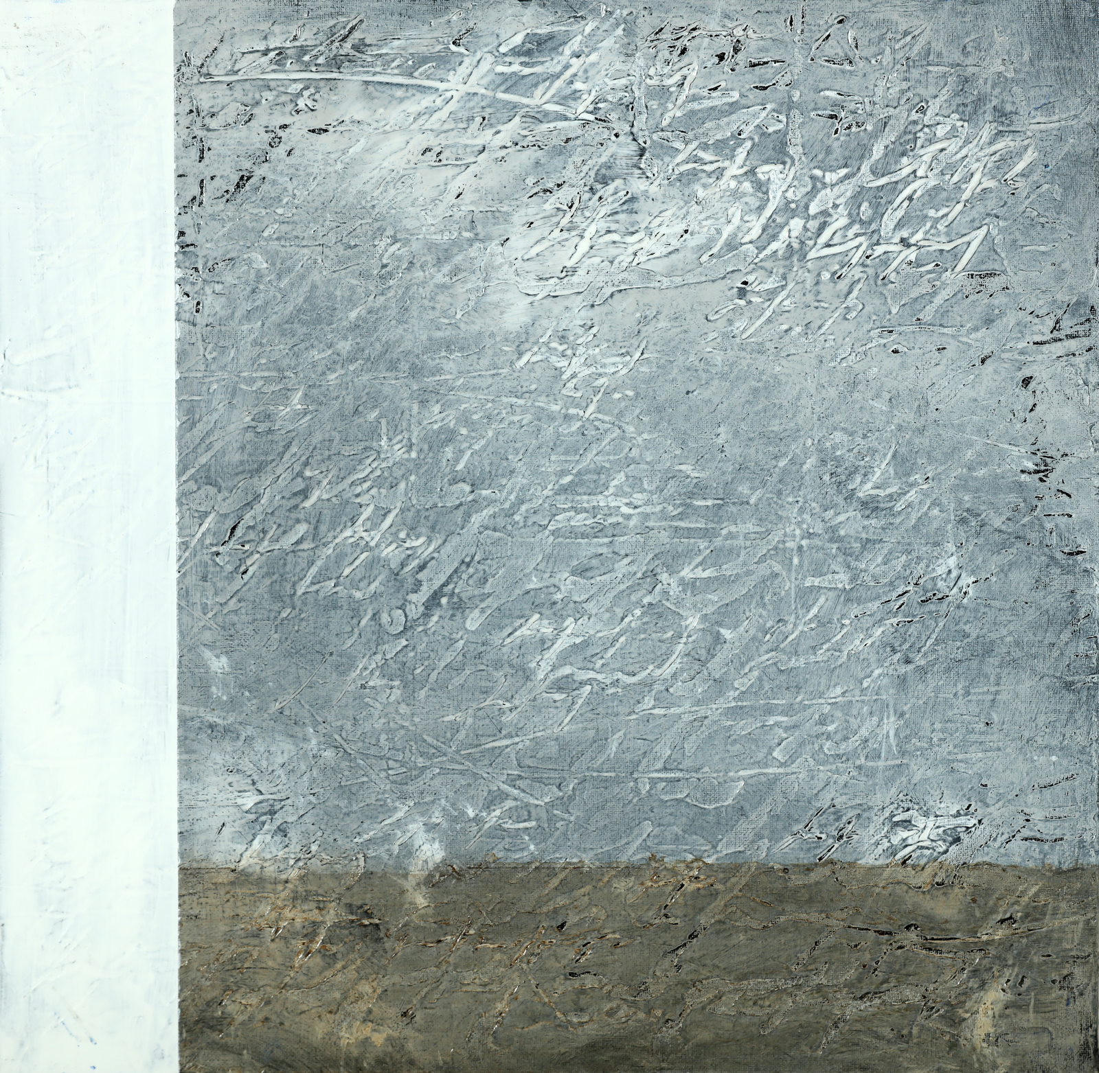 RAPETTI ALFREDO (n. 1961) Scrittura geometrica. 2010. Tecnica mista su tela. Cm 25,00 x 25,00. Al retro titolo, firma e anno. Autentica dell'artista su fotografia.
