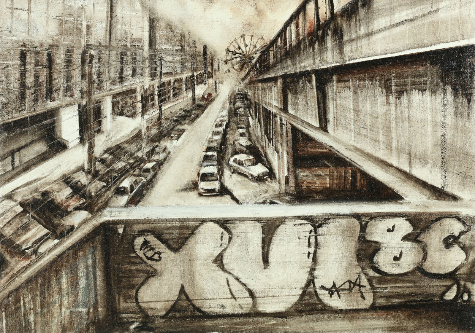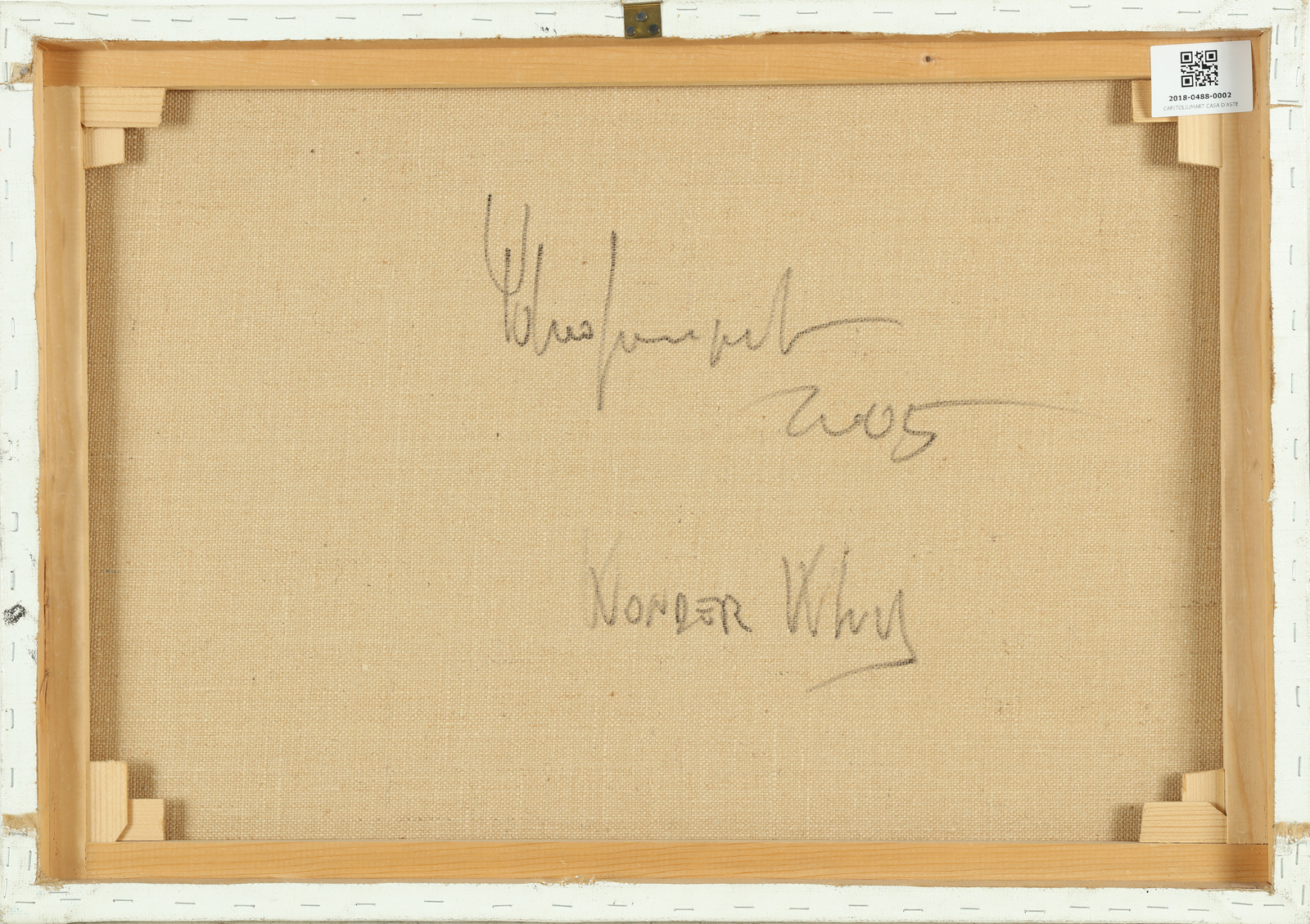 GIAMPIETRO FABIO (n. 1974) Wonder why. 2005. Oil on canvas . Cm 70,00 x 50,00. At the back title, signature and year. Artist's authenticity certificate on photo. Publication: Fabio Giampietro - I wonder why/ the wonder wheel by Giuliana Scimé, Fabrica Eos, Milan, December 2005.