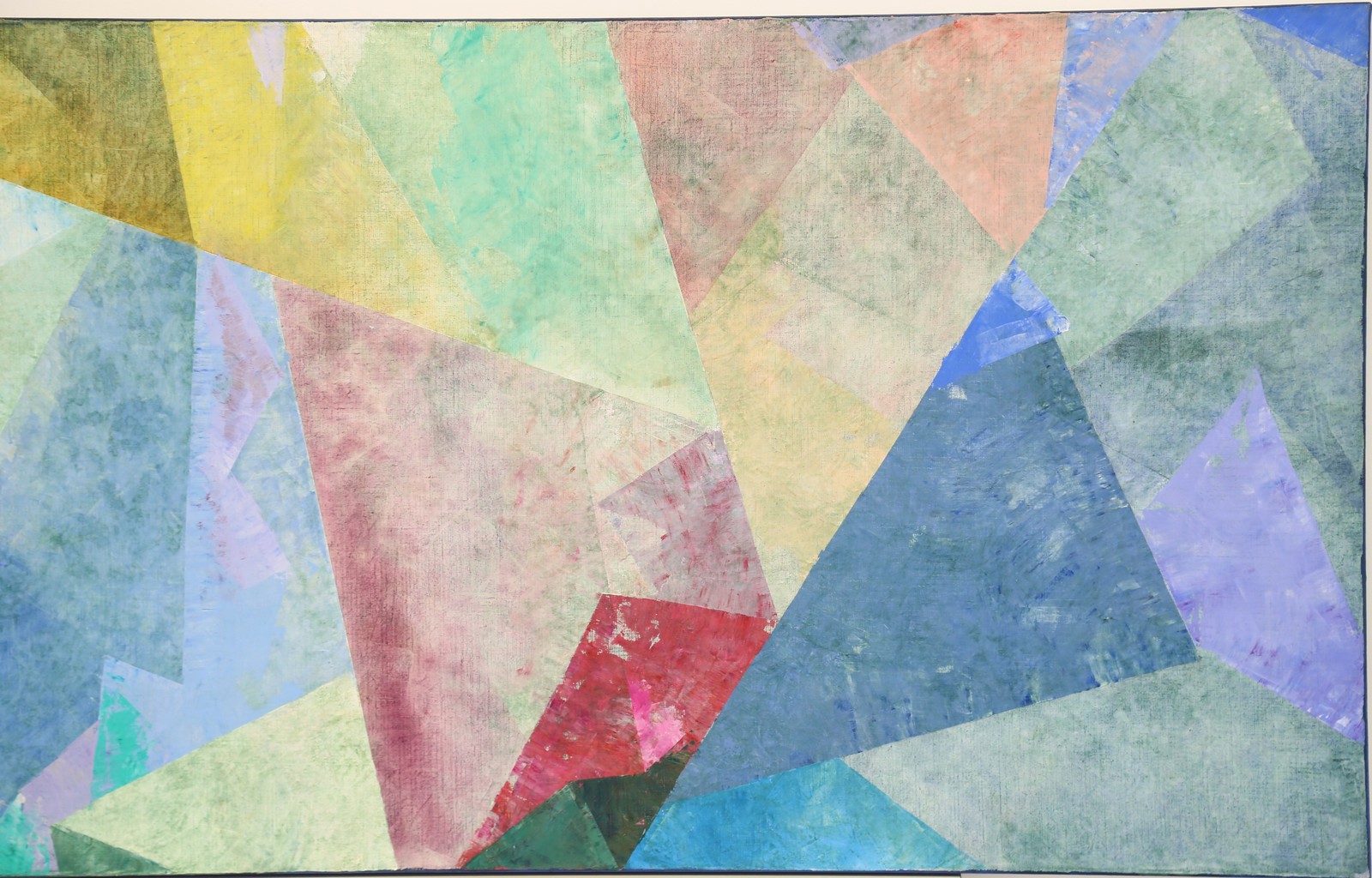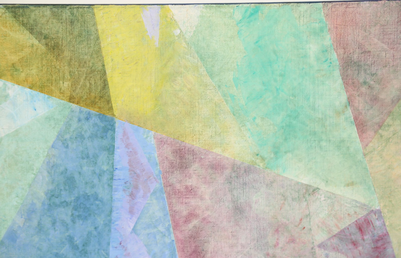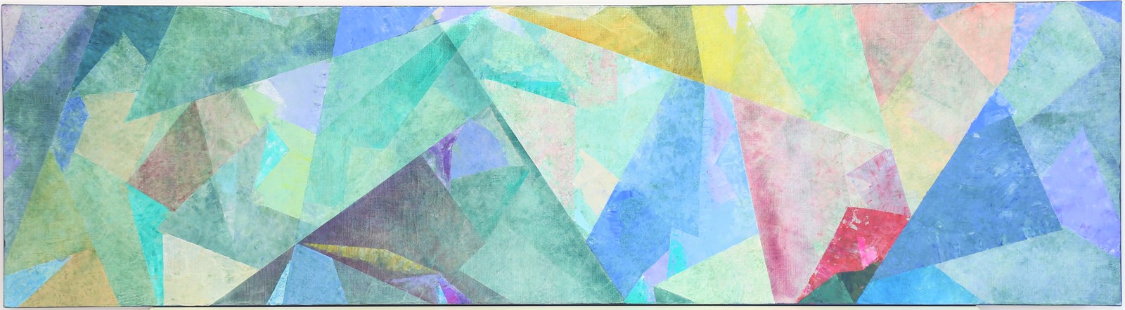 MATINO VITTORIO (n. 1943) Traverdi. 1979. Tecnica mista su tela. Cm 75,00 x 275,00. Al retro titolo, firma, anno e timbro descrittivo dell'artista.