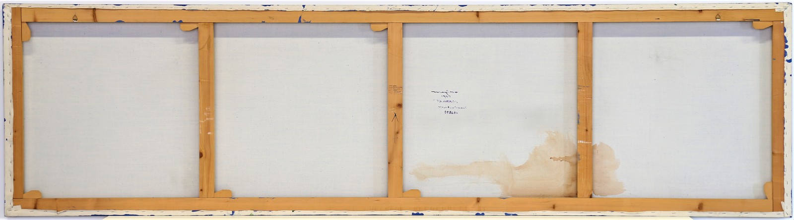 MATINO VITTORIO (n. 1943) Traverdi. 1979. Mixed media on canvas. Cm 75,00 x 275,00. At the back title, signature, year and artist's stamp.