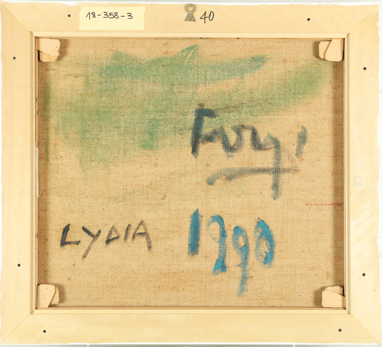 FRANGI GIOVANNI (n. 1959) Lydia. 1990. Oil on canvas . Cm 80,00 x 70,00. At the back title, signature and year. Artist's authenticity certificate on photo. Cornice presente