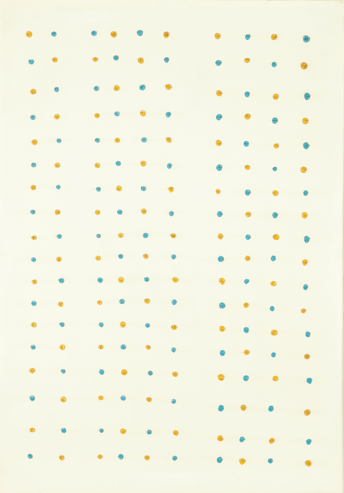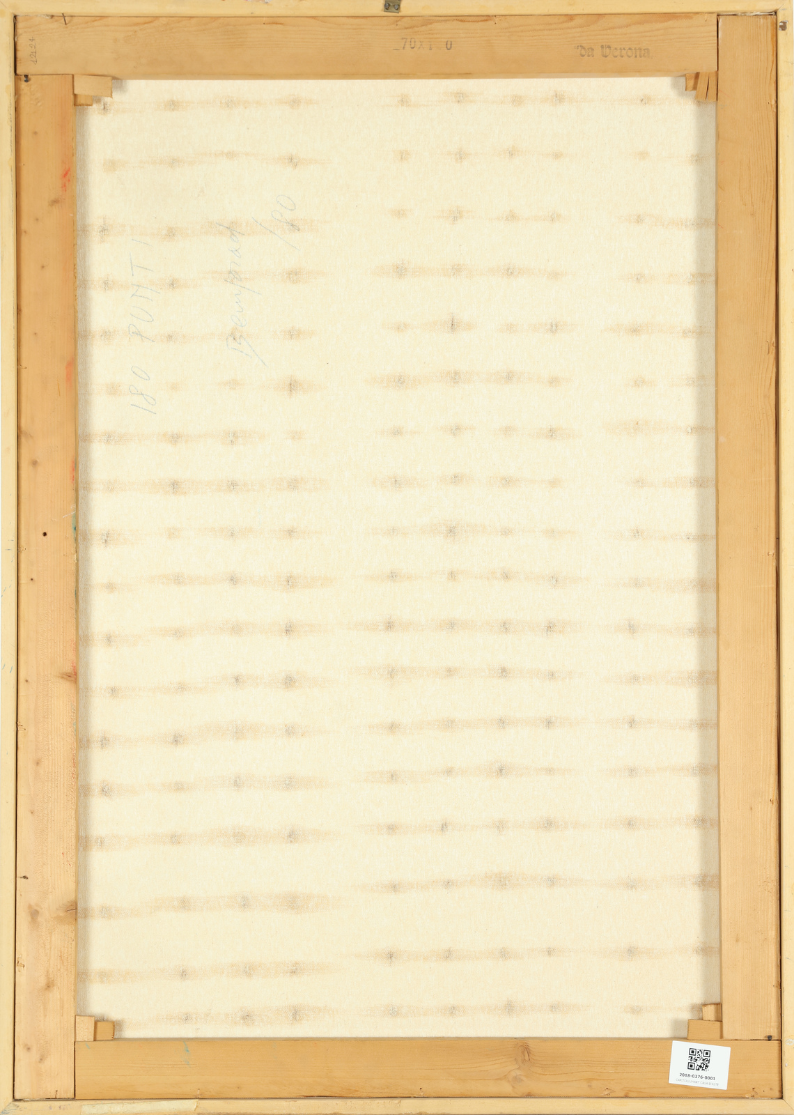 BEMPORAD FRANCO (1926 - 1989) 180 punti. 1980. Olio su tela . Cm 100,00 x 70,00. Al retro titolo, firma e anno. Pubblicazione: Franco Bemporad dalla materia al segno a cura di Daniele Astrologo ed Elisabetta Bucciarelli, 2005, pag. 94. Cornice presente