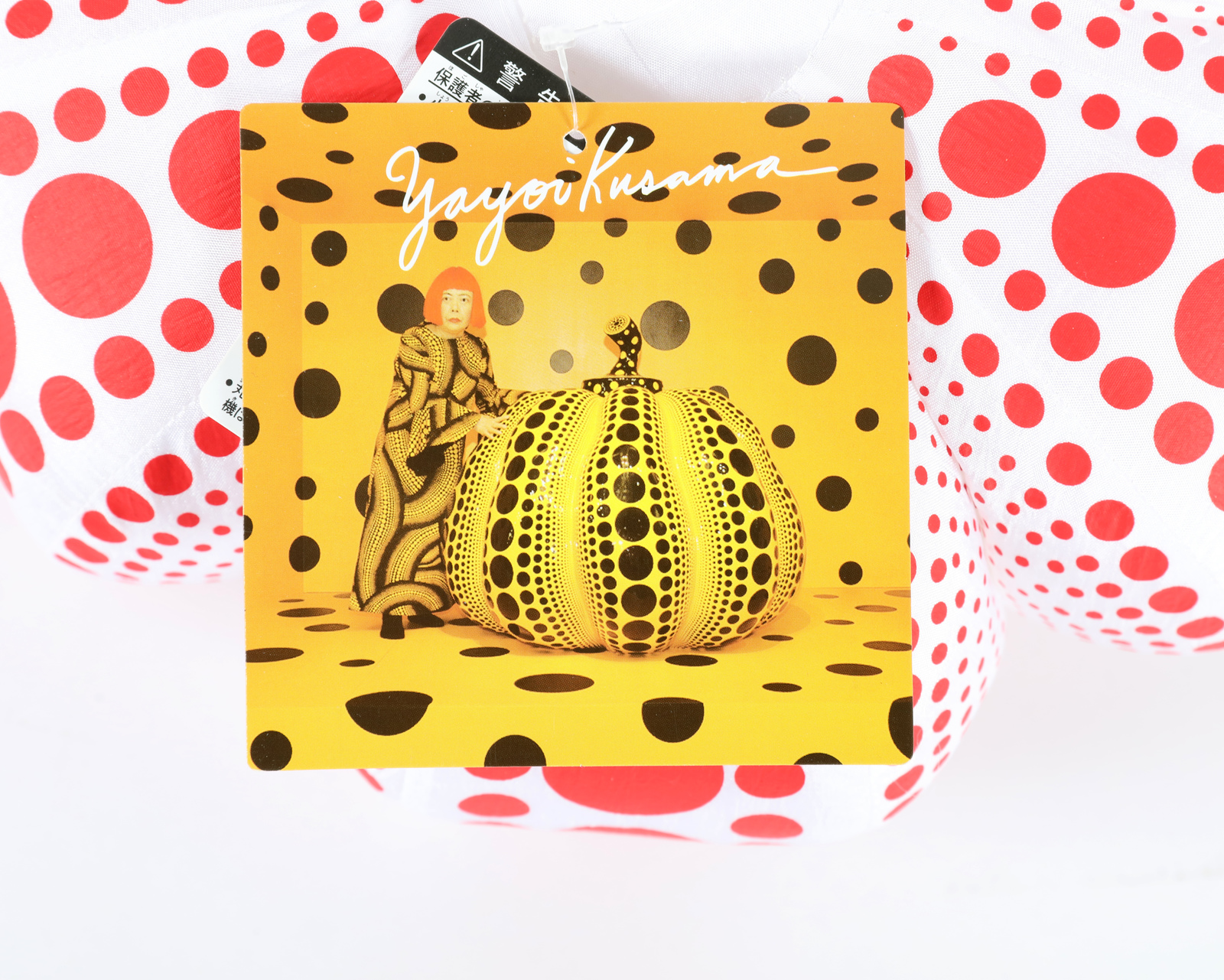 KUSAMA YAYOI (n. 1929) Pumpkin. Tessuto. Cm 16,00 x 27,00. Firma a stampa sull'etichetta.