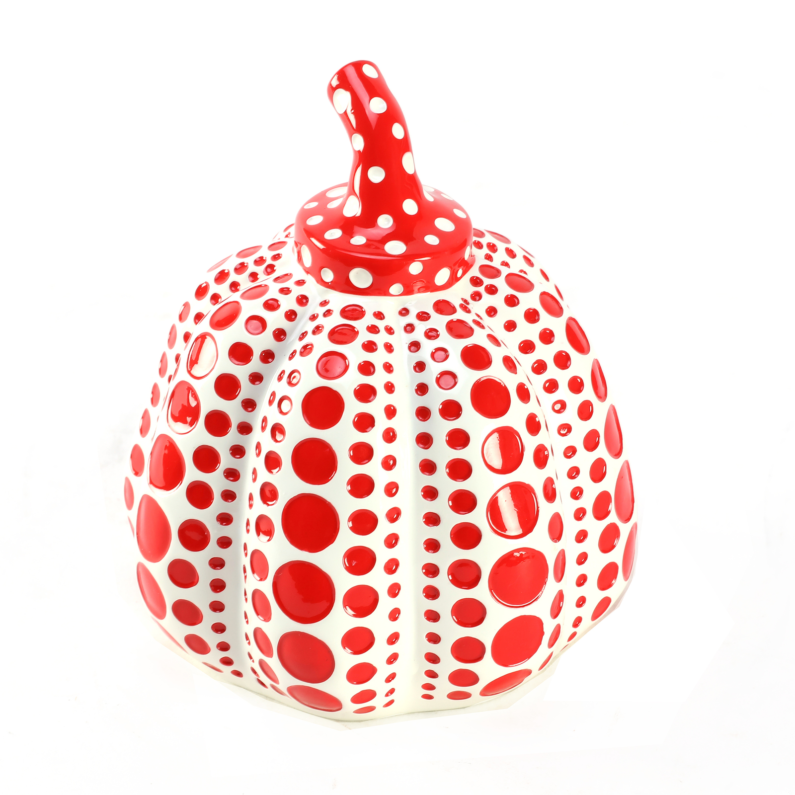 KUSAMA YAYOI (n. 1929) Mini Pumpkin (Red). Resina dipinta. Cm 8,50 x 10,00. Confezione originale. Resina dipinta a mano da un'edizione di poche centinaia prodotte dallo StudioYayoi Kusama. Esposizioni: Yayoi Kusama pumpkin forever, Forever Museum of Contemporary Art, Kyoto.