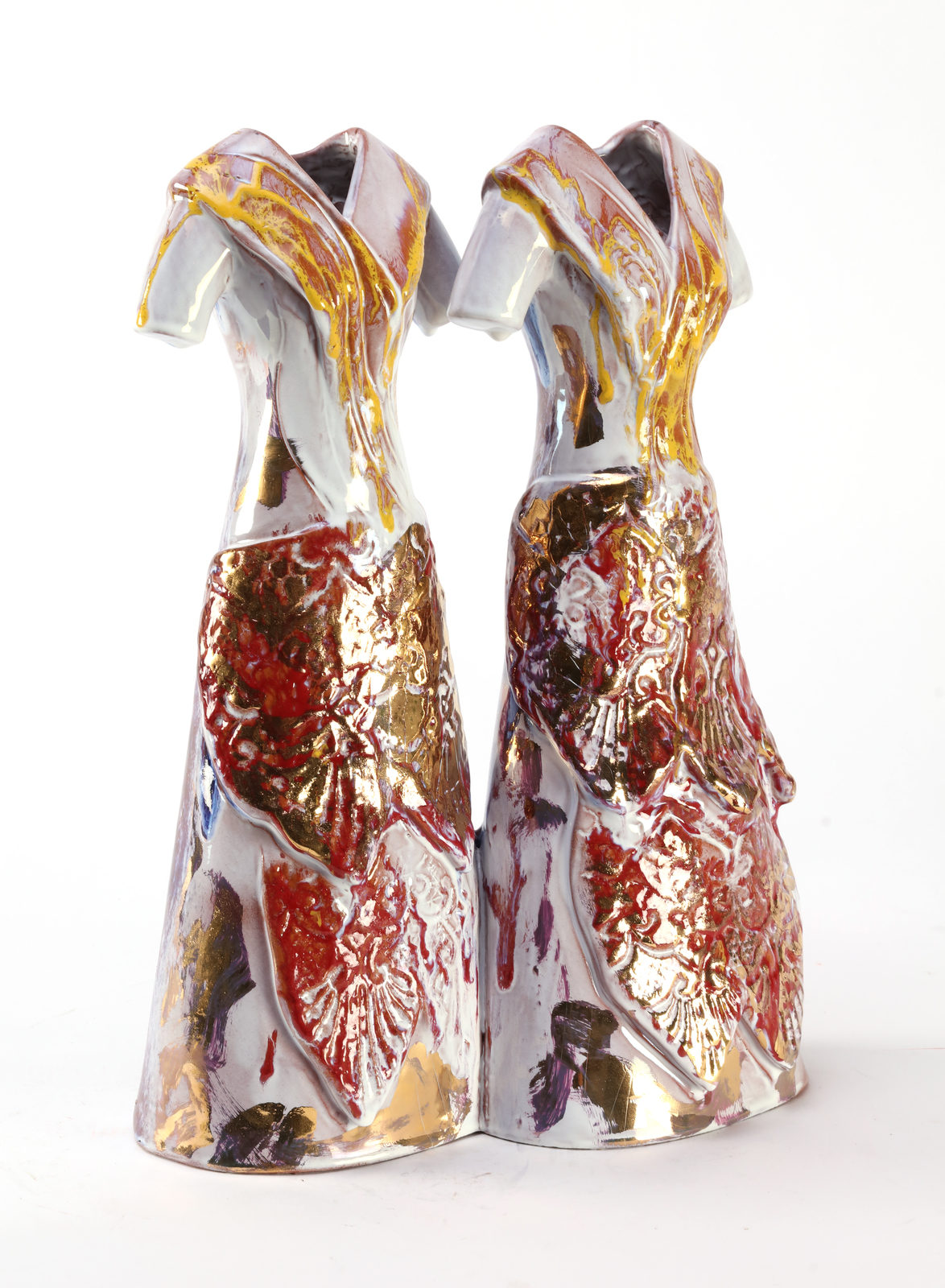 FIORONI GIOSETTA (n. 1932) Le gemelle. 2015. Porcellana e oro zecchino. Cm 28,00 x 39,00 x 13,00. 7/10. Tiratura, firma, anno e timbro Ceramica Gatti, Faenza. Autentica dell'artista su fotografia. Pubblicazione: Giosetta Fioroni - Il ritorno dell'archetipo a cura di Luca e Francesca Barsi, Umberto Allemandi, Galleria Accademia 5 Febbraio - 5 Marzo 2016, Torino, pag. 11.