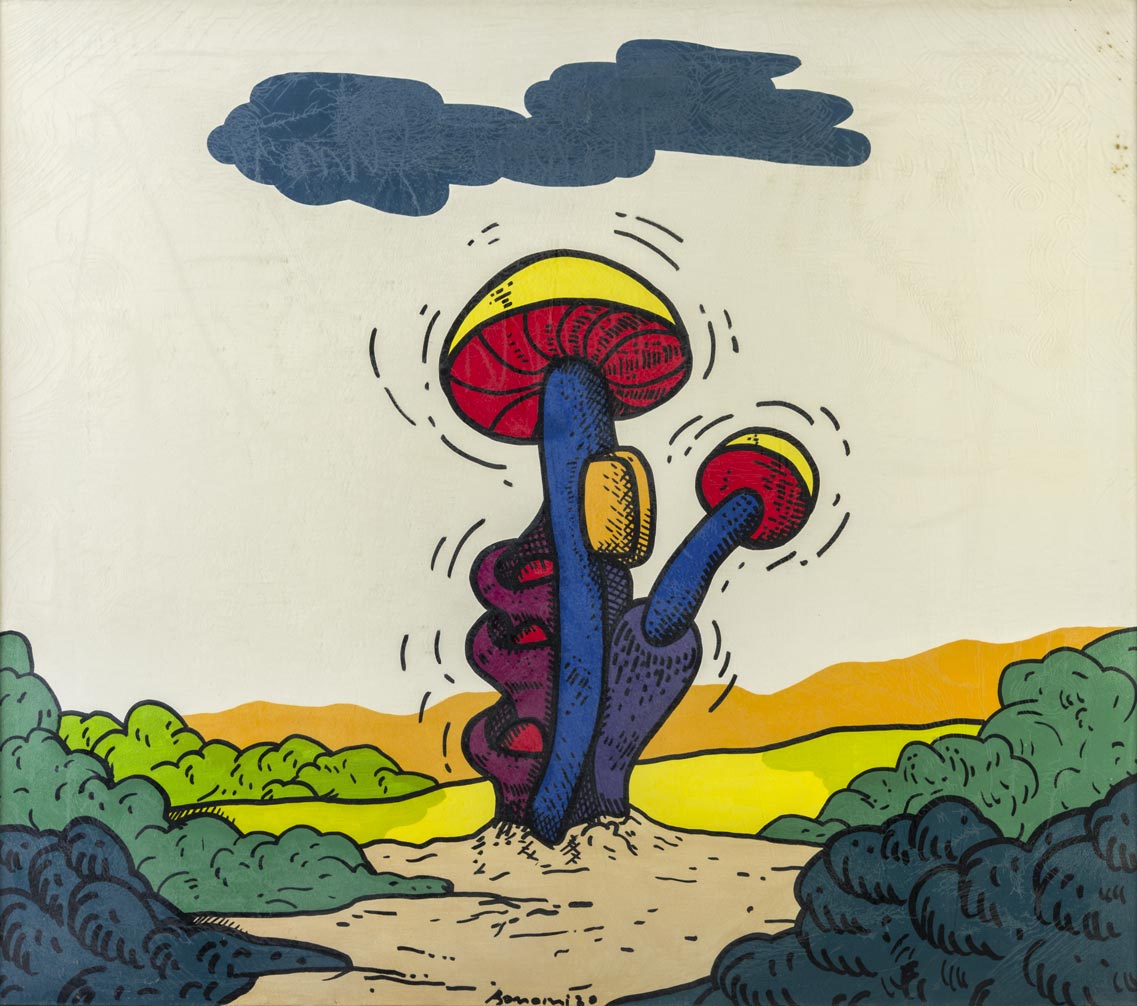 NARCISO BONOMI (1947) Metamorfosi di un fungo 1970 Acrilico su tela 70 x 80...