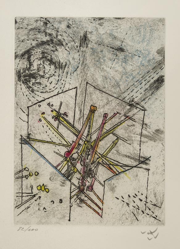 Acquaforte e acquatinta, es. 82/100, Edizioni Georges Visat, Parigi, dalla cartella di Henri Michaux, 'Droites libérées'