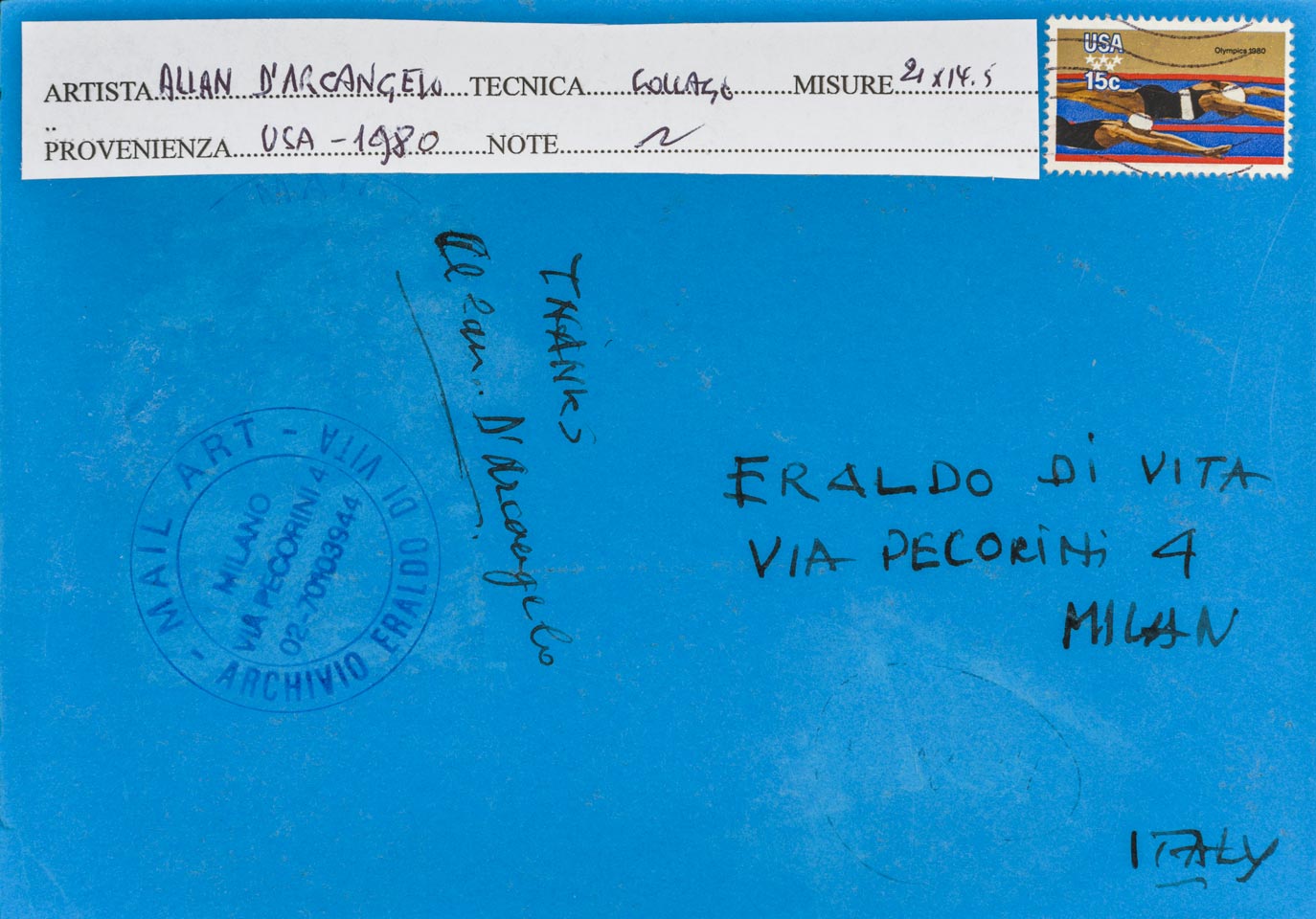 Archivio Eraldo Di Vita Mail Art, Milano (timbro al retro)